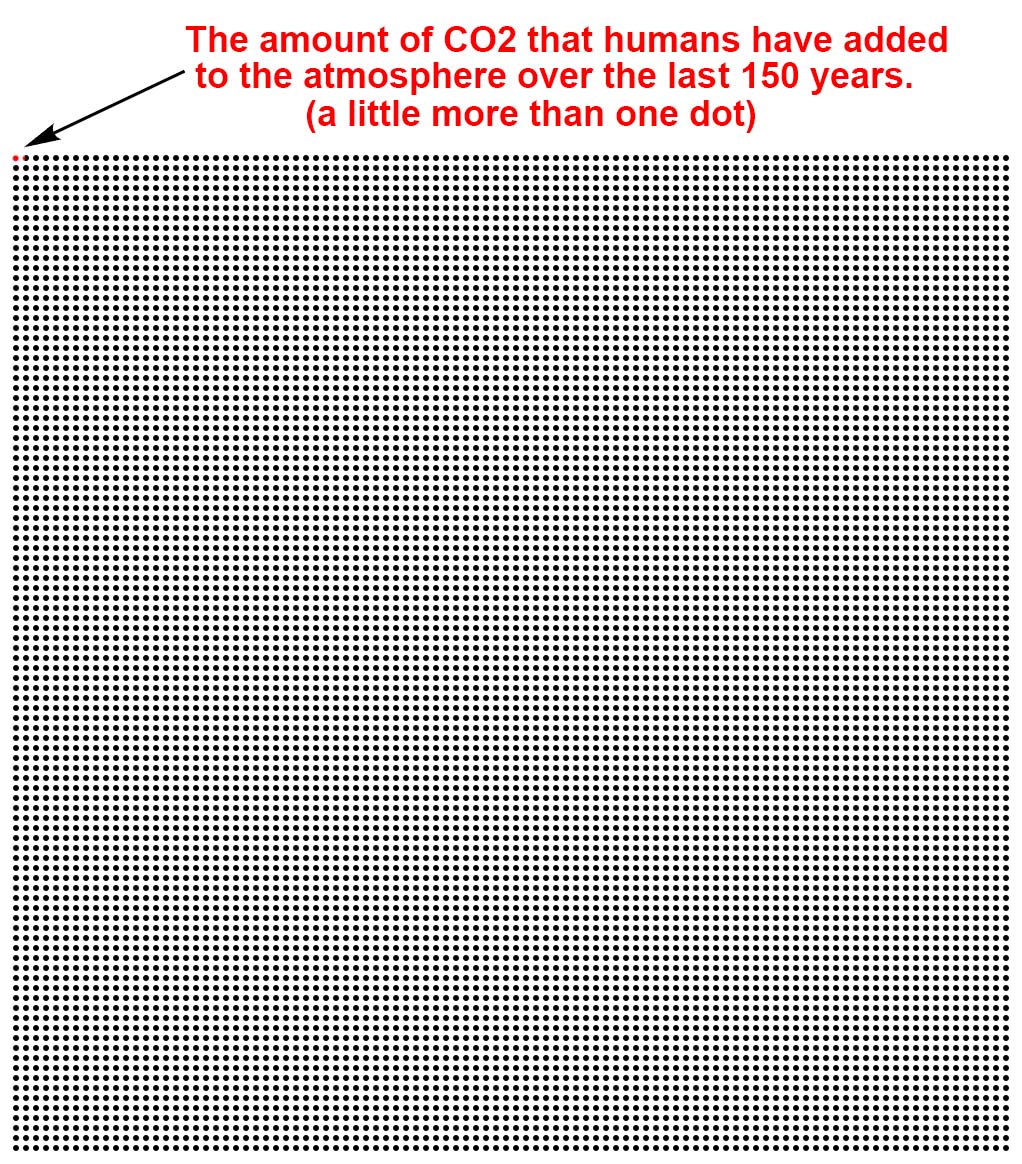 Lying with statistics on steroids! It's even scarier to talk in terms of molecules! Never mind that it's still just 1.29 parts out of 10,000 (since 1880). And, for good measure, they included preexisting CO2 in their figure. How has the planet survived with 29 thousand billion billion billion billion molecules of preexisting CO2?